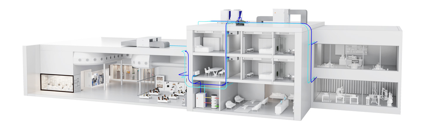 Le choix de la meilleure solution de climatisation des grands bâtiments commerciaux est un défi majeur pour les concepteurs. Parmi les nombreux éléments à prendre en considération au moment du choix figurent non seulement la réduction de la consommation d'énergie des bâtiments et la recherche d'un confort d'habitation optimal, mais aussi la simplicité lors de la phase de conception et d'installation, l'absence de coûts d’entretien trop élevés et la possibilité d'étendre et de modifier le système en fonction des besoins futurs.