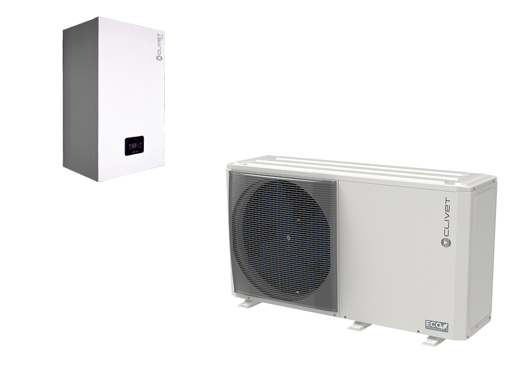 - hibridna različica v kombinaciji s 24 kW ali 34 kW kotlom Clivet s takojšnjo pripravo tople sanitarne vode